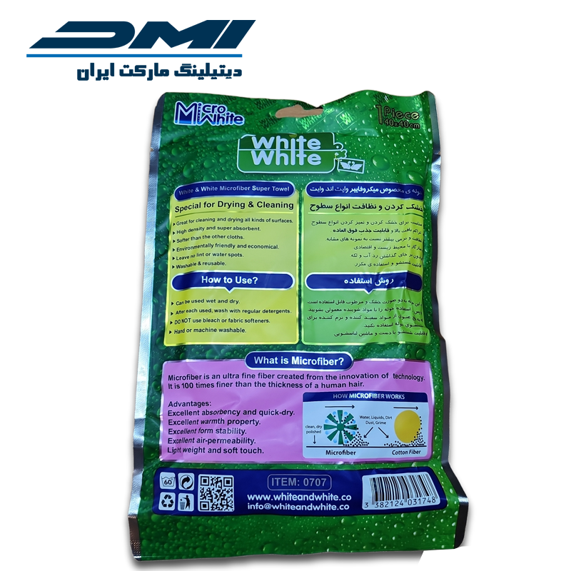دستمال مخصوص پاک کردن میکروفایبر وایت وایت سوپر تاول White White Super Towel Microfiber Cleaning Cloth در ابعاد 40*40 ساخته شده از الیاف بسیار مرغوب است. این محصول جذب بالایی داشته و بر روی سطوح اثری باقی نمی گذارد. این دستمال 2 رو بوده و دور دوخت می باشد. از این دستمال می توان برای پاک کردن و خشک کردن کلیه سطوح استفاده کرد. دستمال میکروفایبر وایت وایت مدل سوپر تاول را می توان برای پاک کردن نانوسرامیک, پاک کردن پولیش و یا امور صفرشویی مورد استفاده قرار داد. محصول دارای کیفیت بالایی می باشد.
